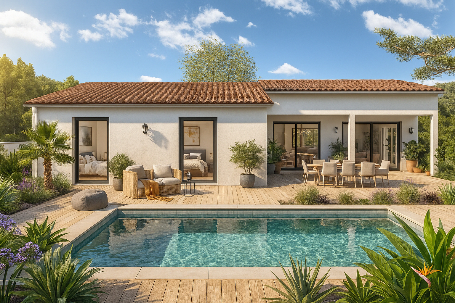 *Le terrain est proposé et vendu par notre partenaire foncier selon les disponibilités en cours. Veuillez noter que les frais de notaire, les taxes diverses, les papiers peints, la peinture, la moquette et les aménagements extérieurs ne sont pas inclus dans le prix.