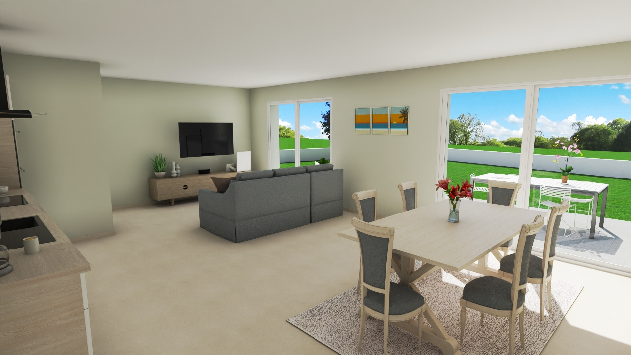 Les Maisoniales, votre constructeur dans la plaine du Forez et ses environs, vous invite à découvrir ce superbe projet de construction d’une villa de 90 m². Elle se compose de 3 chambres avec des placards muraux, d’une salle de bain avec un receveur de douche ou une douche italienne selon vos préférences, d’un vaste espace de vie exposé plein sud de plus de 40 m², ainsi que d’un cellier situé à proximité de la cuisine.