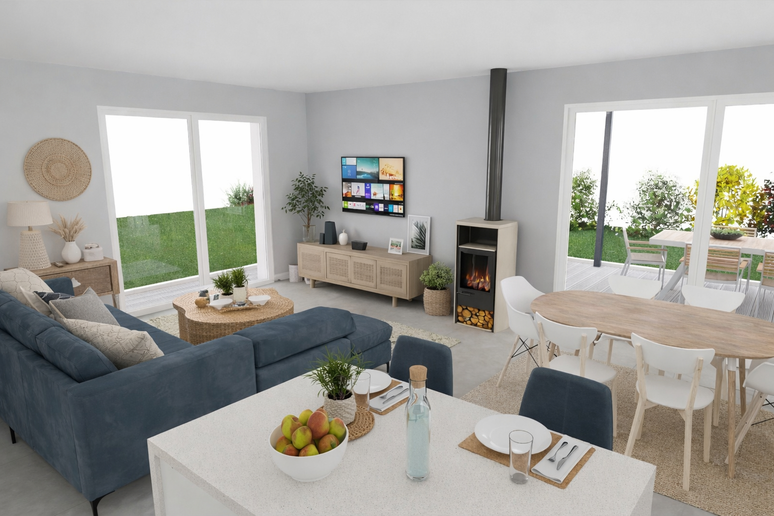 Chauffage par pompe à chaleur et plancher chauffant, poêle à granulés ou bois en option